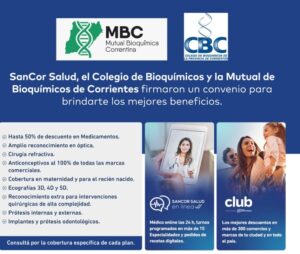 El Colegio de Bioquímicos y la Mutual Bioquímica Correntina firmaron convenio para brindar beneficios a los colegas interesados. Para mas información contactarse con Cristian González al cel. 379 – 4815012