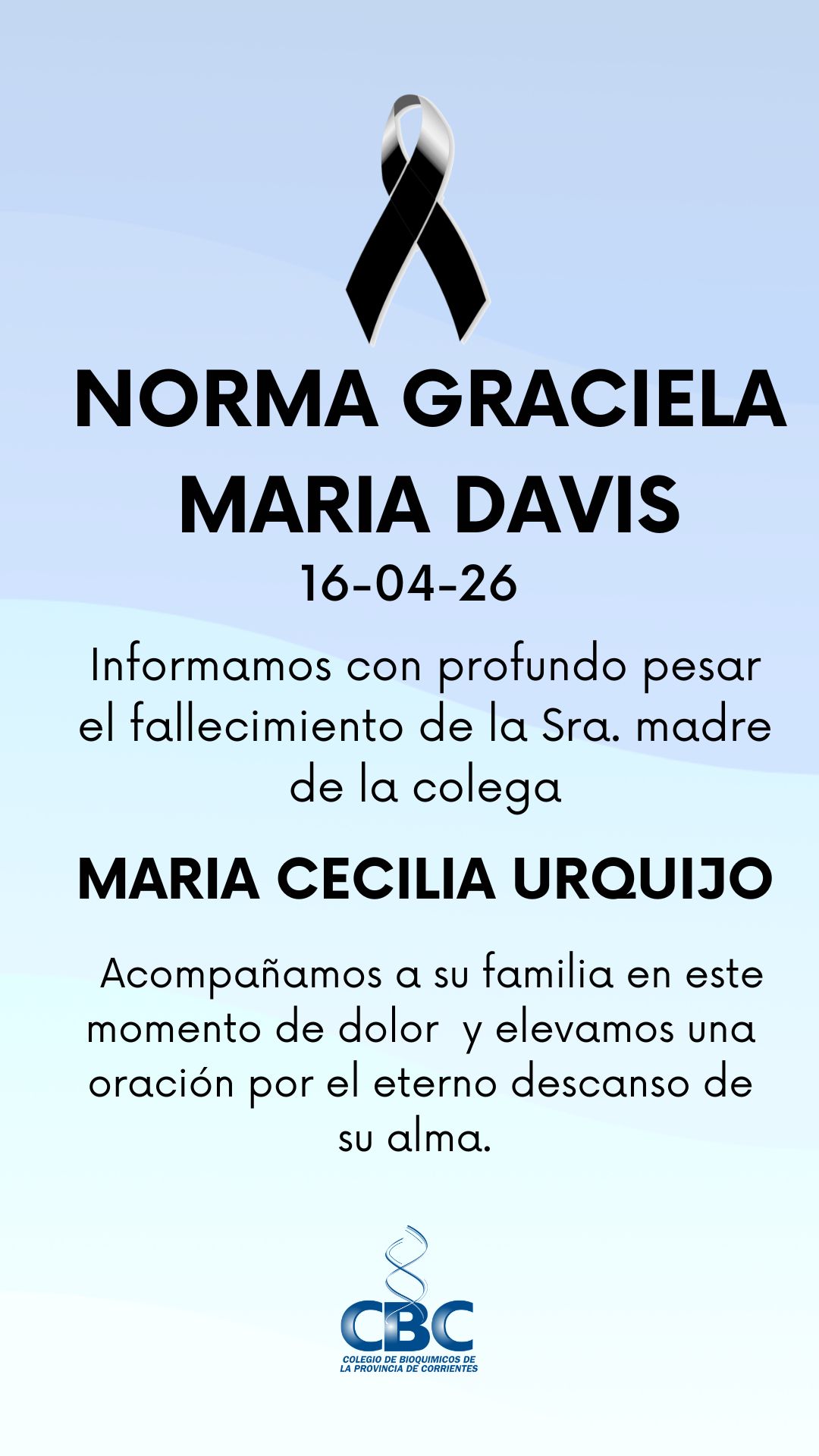 Informamos con profundo pesar el fallecimiento de la sra. madre de la colega María Cecilia Urquijo